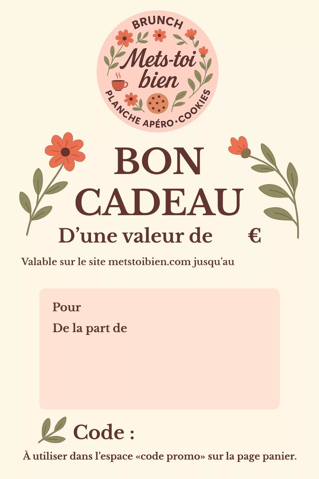 Envie d’offrir une surprise gourmande ? Choisissez le montant de votre bon et laissez vos proches craquer pour ce qui leur fait envie : un brunch généreux, des cookies réconfortants ou encore une planche apéro à partager, livrés directement à la maison en Moselle et Meurthe-et-Moselle.